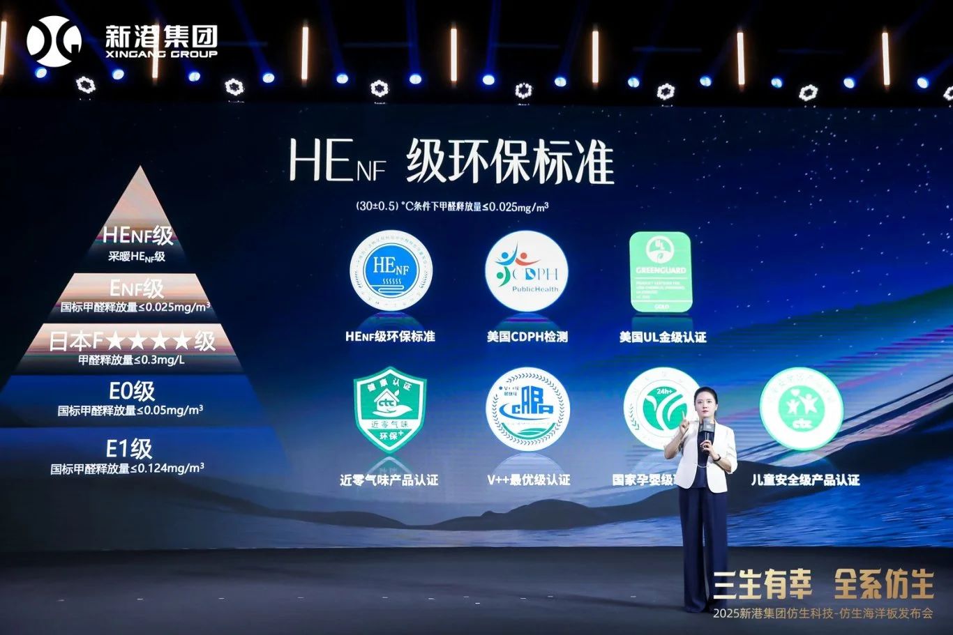 本次展會的“流量擔當”非新港仿生海洋板莫屬。該產品不僅達到了HENF采暖級環保標準,還收獲了含金量極高的美國CDPH檢測,美國UL金級認證,達到環保、防霉、防潮、抗菌、抗腐蝕等八大性能突破,實現了環保性、耐用性、功能性、裝飾性的全面升級。