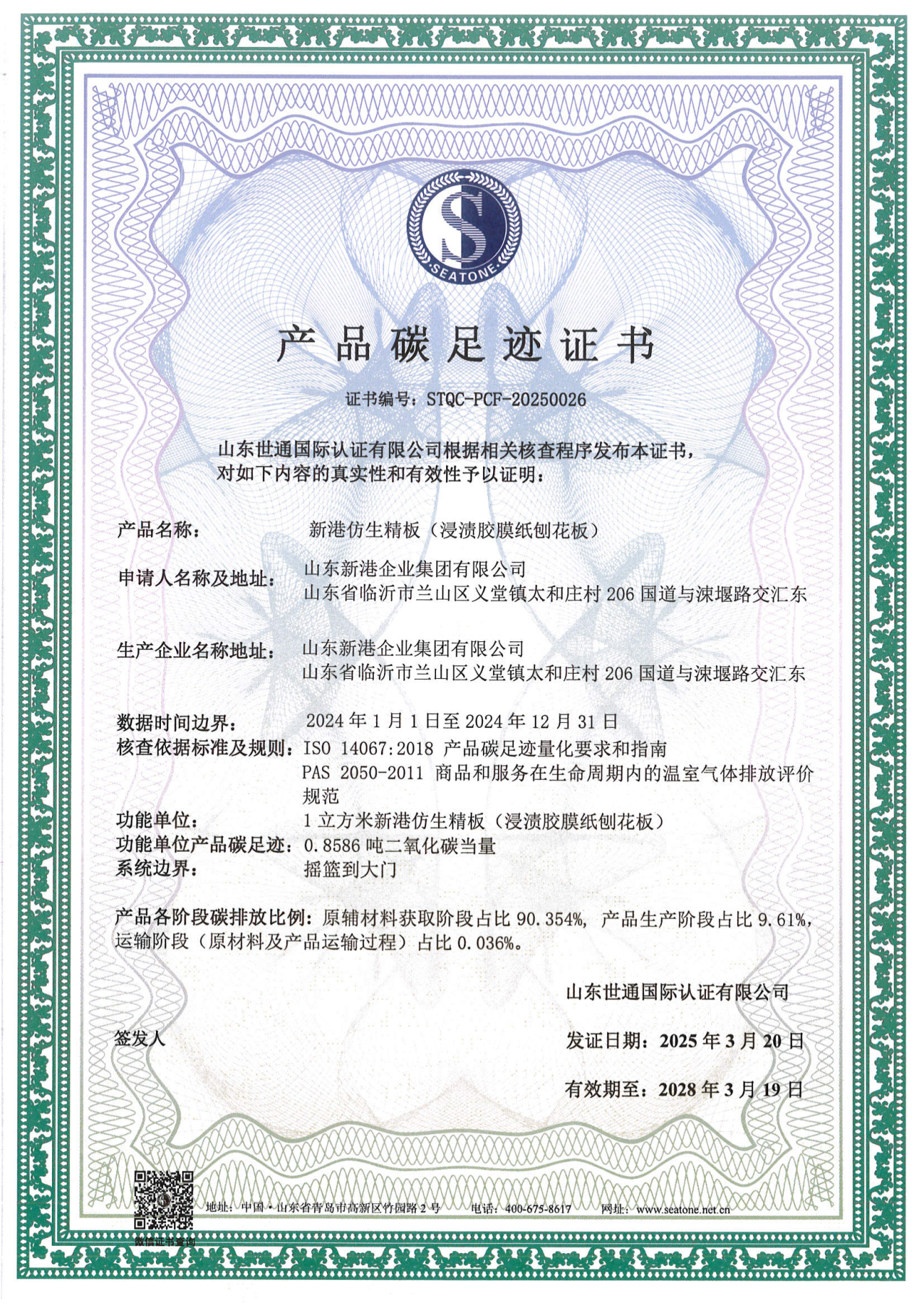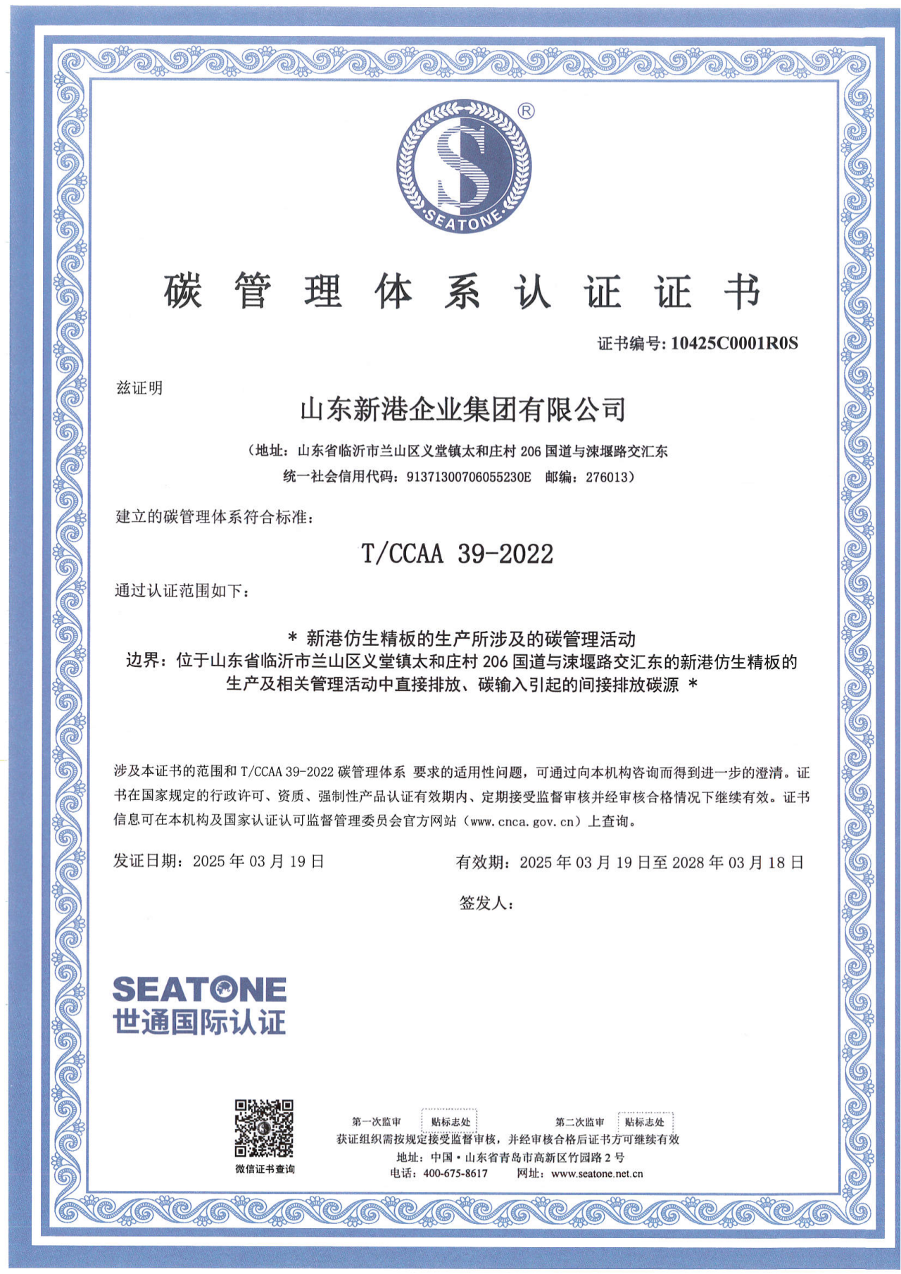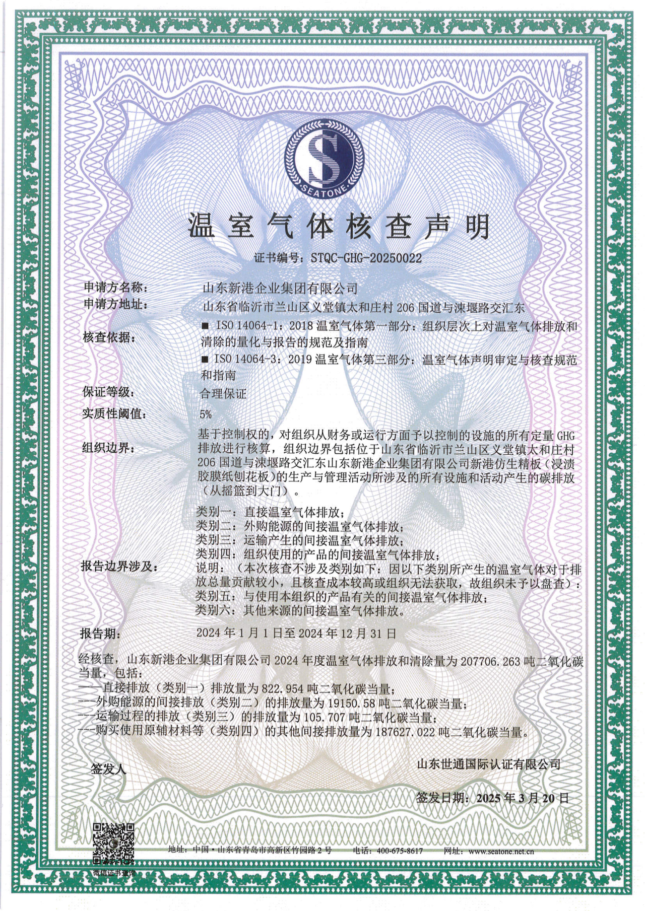 近日,山東新港企業(yè)集團(tuán)有限公司成功獲得碳管理體系認(rèn)證證書、產(chǎn)品碳足跡證書與溫室氣體核查聲明。此次連續(xù)兩年通過認(rèn)證,標(biāo)志著集團(tuán)在踐行“雙碳”目標(biāo)、推動(dòng)綠色、低碳、可持續(xù)發(fā)展方面再次邁出了堅(jiān)實(shí)的一步,也是集團(tuán)在環(huán)保領(lǐng)域長期深耕的有力見證。