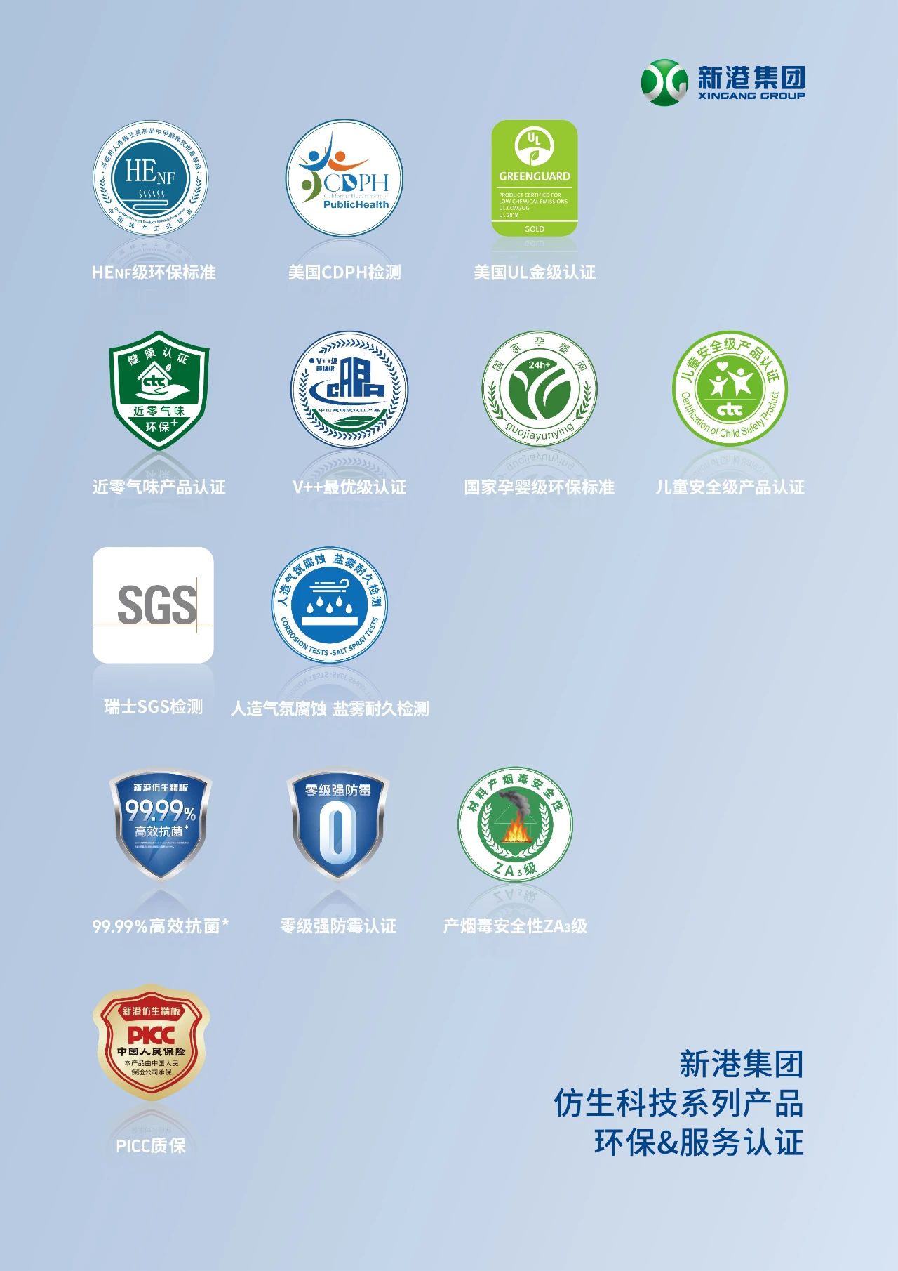 新港擁有行業領先的研究院,3000 多平方米的CNAS 實驗室,能夠實現全球153個國家和地區的互認。強大的研發和檢測實力,為產品的品質提供了堅實的保障,打造出了備受信賴的仿生產品矩陣和仿生室內空間。
