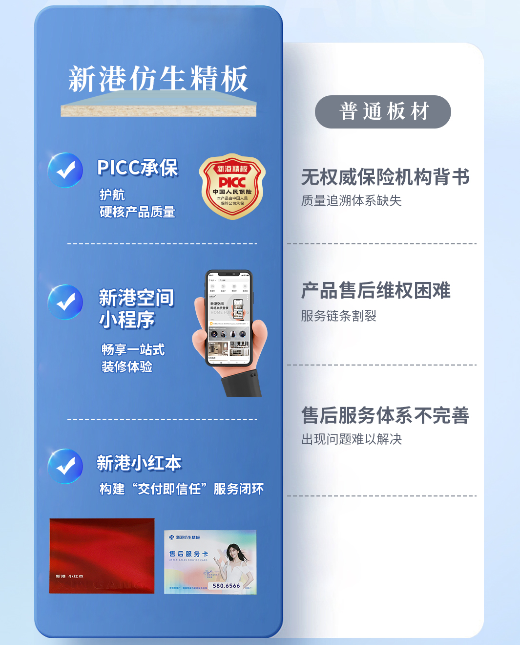 新港集團始終將服務放在重要位置,推出了“家居安心守護官” 服務體系。與PICC中國人保合作,為產品提供質量保障,讓消費者購買更放心。“新港小紅本”和“新港空間小程序”的推出,為客戶提供了便捷的服務渠道,實現了從產品咨詢、下單到售后的全程跟蹤和服務,再也不怕最后一公里的交付問題,讓客戶感受到全方位的貼心呵護。