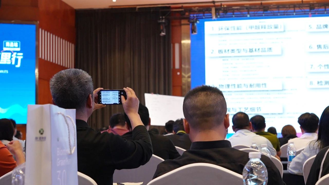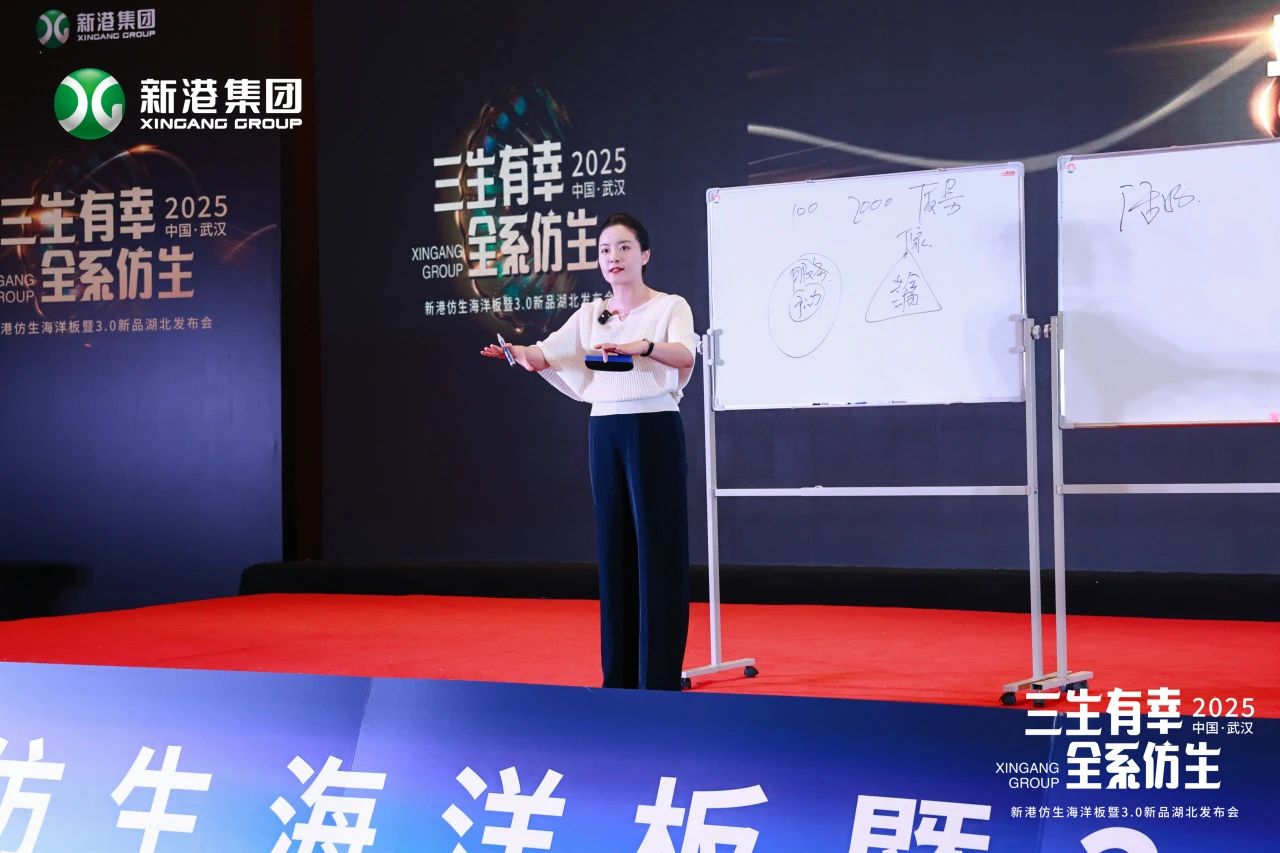 4月的品牌萬里行最后一站,我們來到了武漢,這座充滿活力與英雄氣息的城市。新港仿生海洋板、全新3.0花色再次閃耀登場。此次會議中,主題演講環節成為全場關注的焦點。新港集團副總裁姜總、首席產品顧問劉若一老師以及系統柜阿穆特老張依次上臺,帶來了精彩且富有深度的分享。