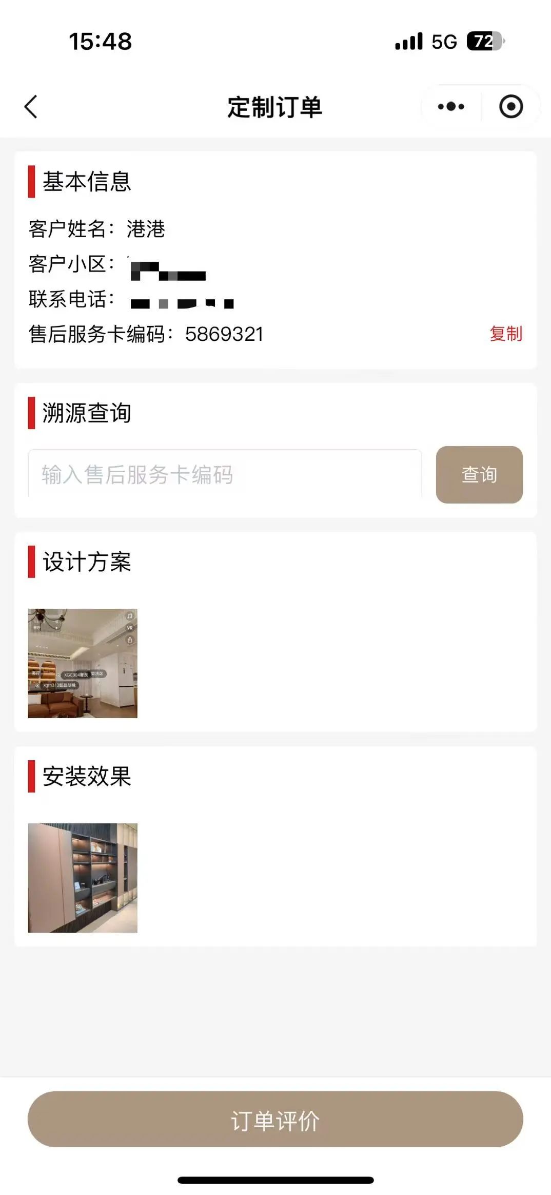 ? 微信搜索「新港空間」→「我的」→「定制訂單」→ 輸入售后服務卡正面的數字編碼。