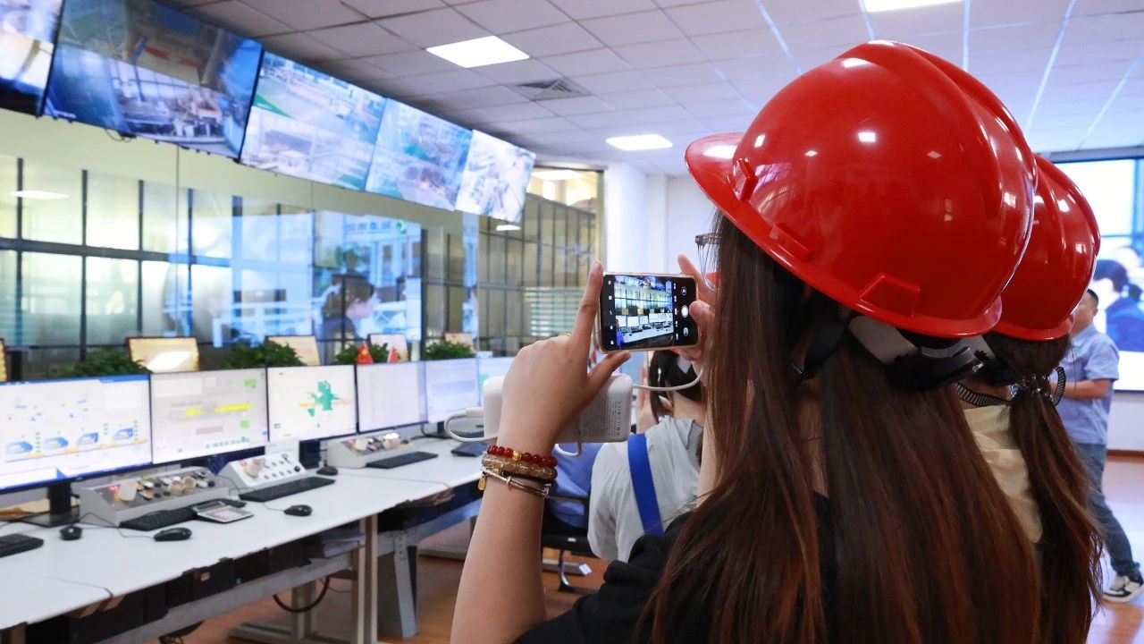 紙上得來終覺淺,絕知此事要躬行。生產線上,一塊塊仿生無醛刨花板在智能設備的運作下有序產出,其堅韌高強的特性與仿生科技的環保品質,讓同學們直觀感受到新港仿生產品的科技魅力。