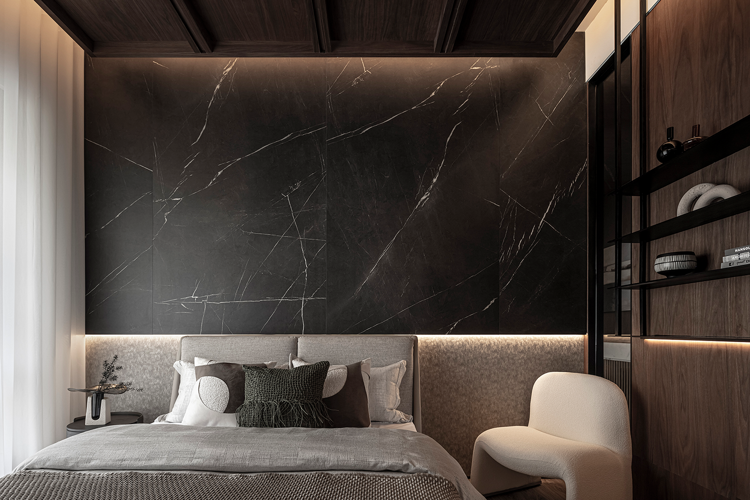 唐忠漢大師深諳此道,以石材的渾厚、木質(zhì)的溫潤、織品的細(xì)膩層層疊加,精妙平衡感官層次與實(shí)用功能,最終凝練成一處內(nèi)斂與質(zhì)感并存、經(jīng)典與當(dāng)代交融的生活范本。