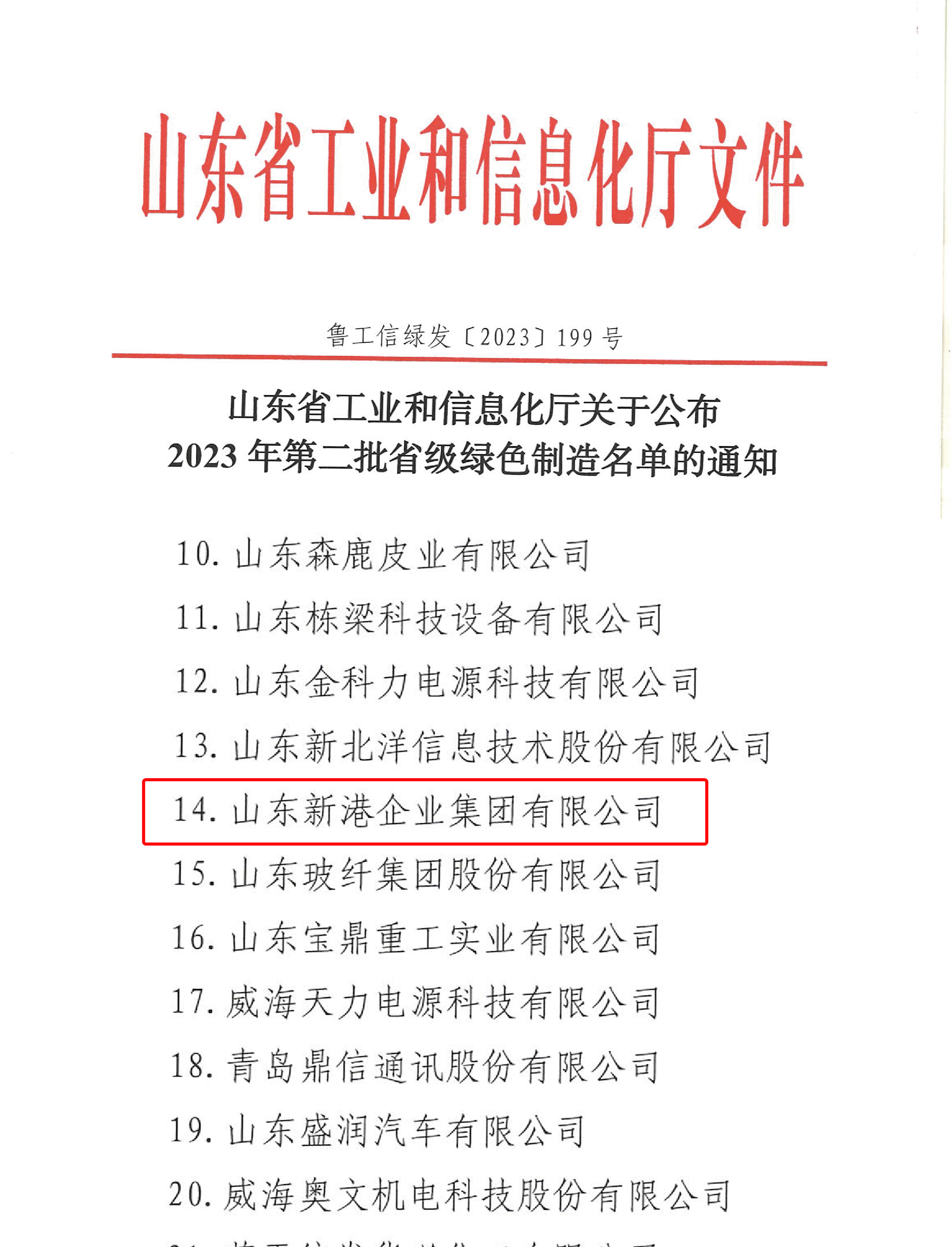 近期,山東省工業和信息化廳公布了2023年第二批省級綠色制造名單,新港集團入選省級綠色供應鏈管理企業。
