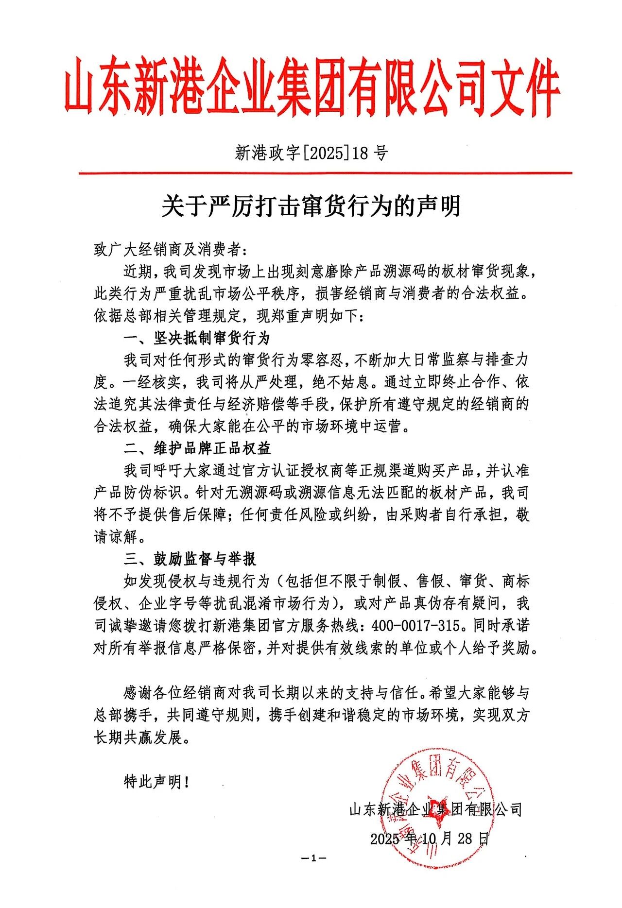關于嚴厲打擊竄貨行為的聲明