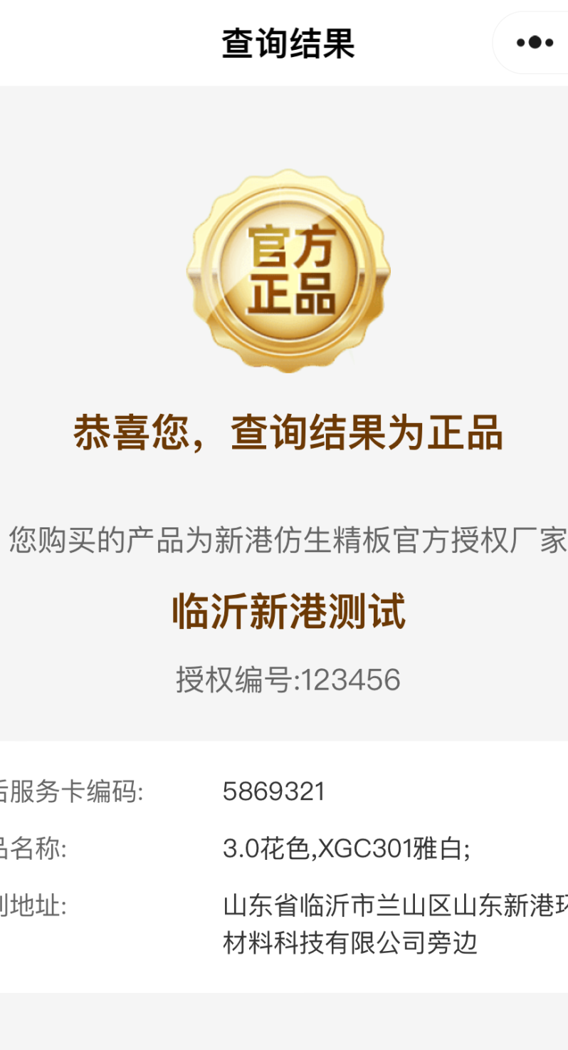 新港仿生精板合格證更新,每張正品的左下角處,均貼有防偽合格證標簽。