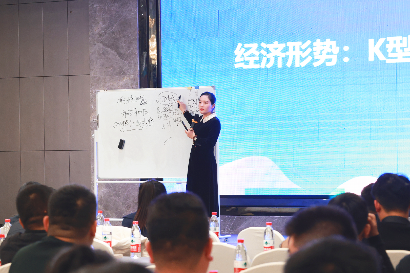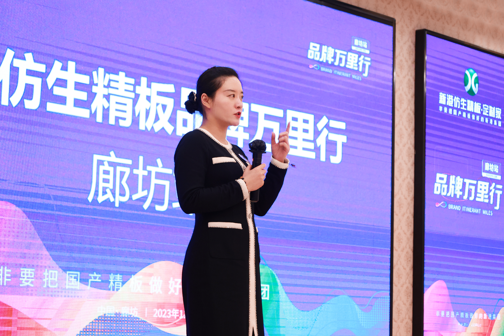 在活動現場,新港集團副總裁姜婷婷針對當前形勢對家居行業未來發展方向展開深度分析,并帶來全新的仿生精板運營模式。