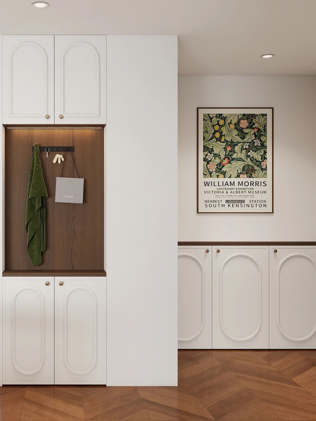雅白在此場景中并非主角,它在餐邊柜、櫥柜、玄關(guān)柜的細(xì)節(jié)中靜靜營造空間的呼吸感。