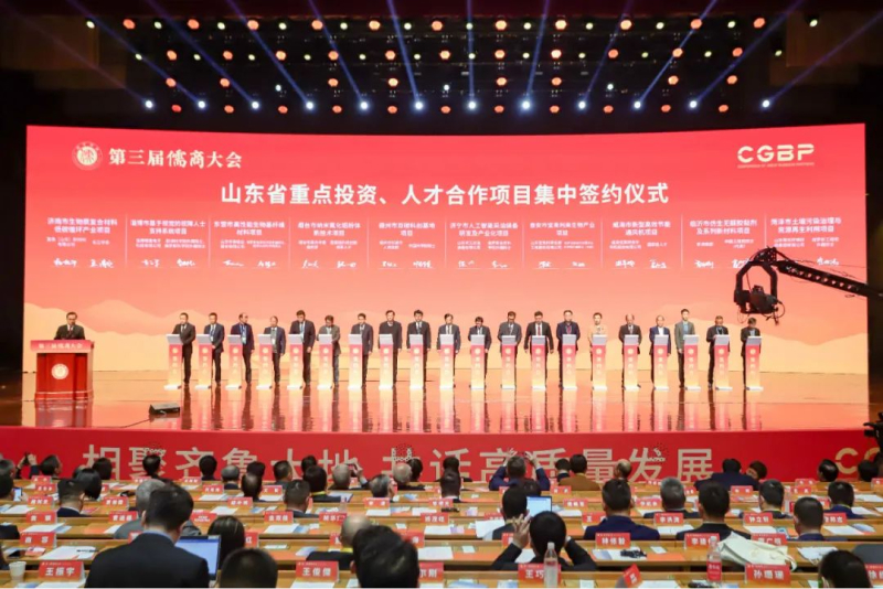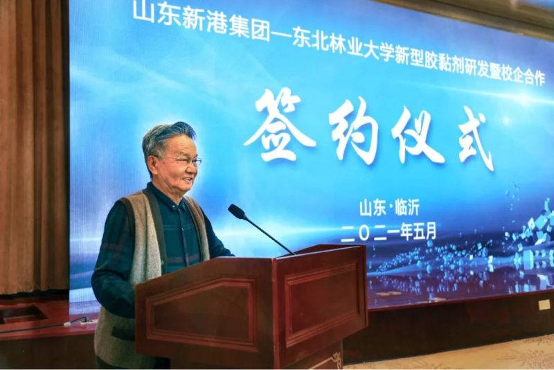 開幕式上舉行了山東省重點投資、人才合作項目集中簽約儀式,集團董事長魏孝新與中國工程院院士代表肖少良就“仿生無醛膠黏劑及系列新材料項目”進行簽約。