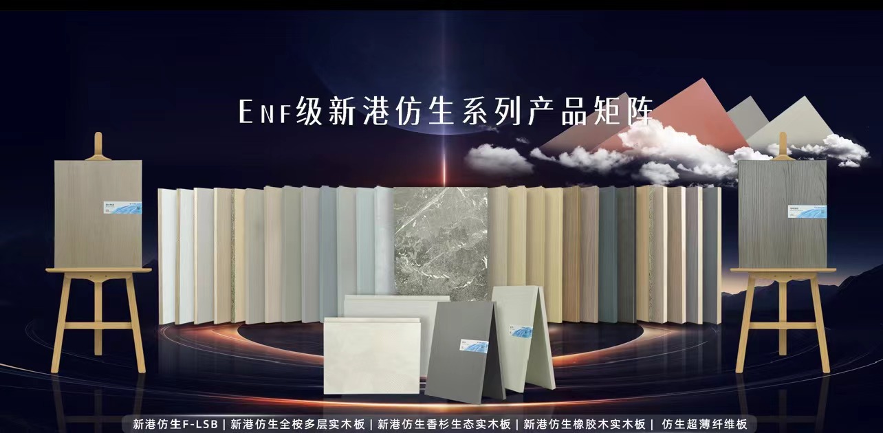 過去一年新港集團(tuán)深入全國28座城市,與家具廠、經(jīng)銷商及消費(fèi)者對板材產(chǎn)品的需求進(jìn)行廣泛的交流調(diào)研?;谶@些真實深度的調(diào)研,新港集團(tuán)正式推出全新的Enf級仿生系列產(chǎn)品矩陣。包括新港仿生F-LSB、新港仿生全桉多層實木板、新港仿生橡膠木實木板、新港仿生香杉生態(tài)實木板、新港仿生超薄纖維板和新港仿生PB板。其中,Enf級仿生超薄纖維板不僅能用作家具板、地板的表面平衡層,木線條、彎曲造型的表面包覆材料,甚至可以實現(xiàn)3D打印花色,完成纖維板從平衡層到飾面層的華麗轉(zhuǎn)身。