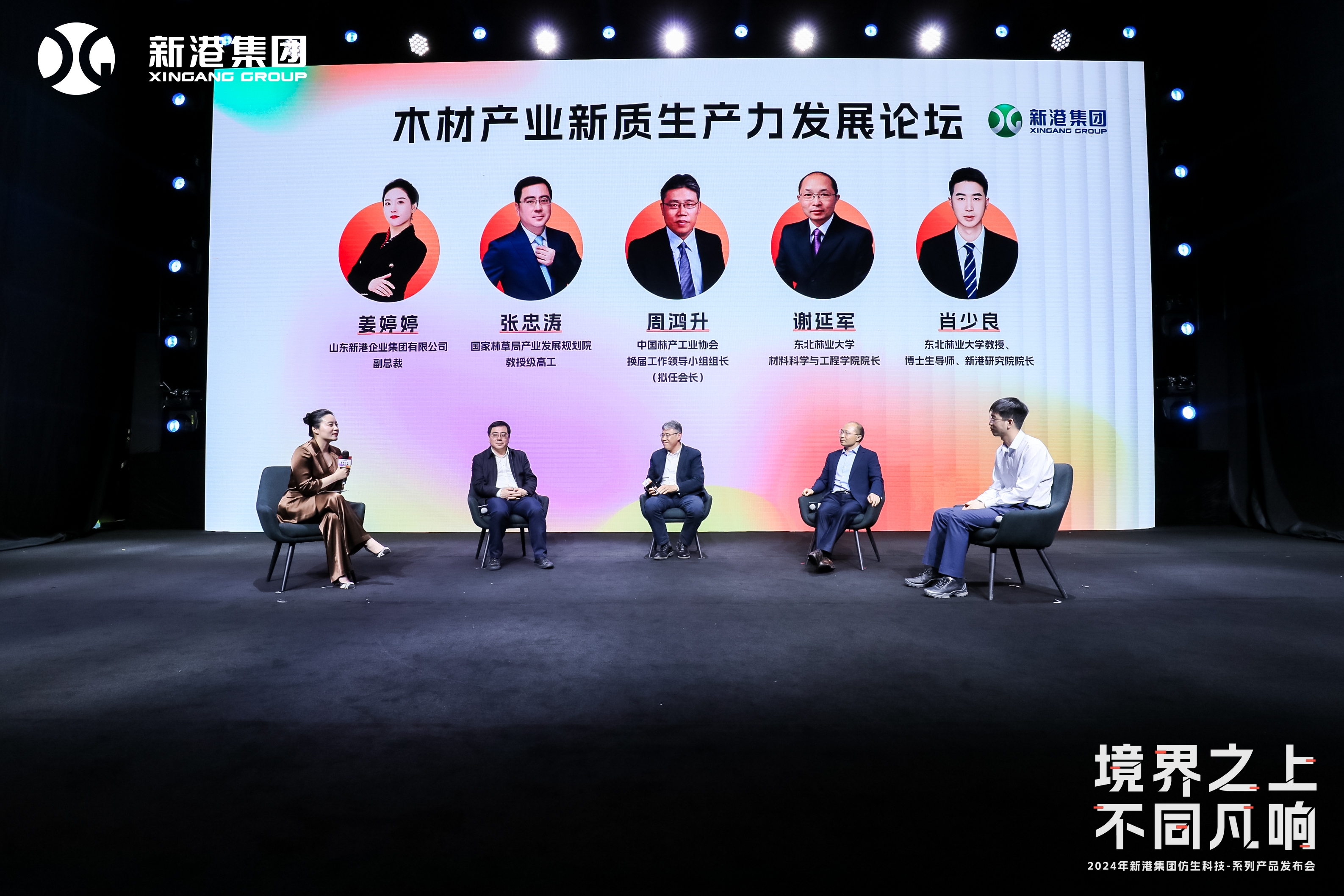在姜婷婷的主持下,中國林產(chǎn)工業(yè)協(xié)會換屆工作領(lǐng)導(dǎo)小組組長(擬任會長)周鴻升;國家林草局產(chǎn)業(yè)發(fā)展規(guī)劃院教授級高工張忠濤;東北林業(yè)大學(xué)材料科學(xué)與工程學(xué)院院長謝延軍;東北林業(yè)大學(xué)教授、博士生導(dǎo)師、新港研究院院長肖少良等行業(yè)專家,就“產(chǎn)業(yè)新質(zhì)生產(chǎn)力需求、仿生科技突破、生產(chǎn)要素的創(chuàng)新性配置、新材料對新質(zhì)生產(chǎn)力的助推、新港產(chǎn)業(yè)深度轉(zhuǎn)型升級”等核心議題展開對話,為行業(yè)的未來發(fā)展提供了寶貴的思路與建議。