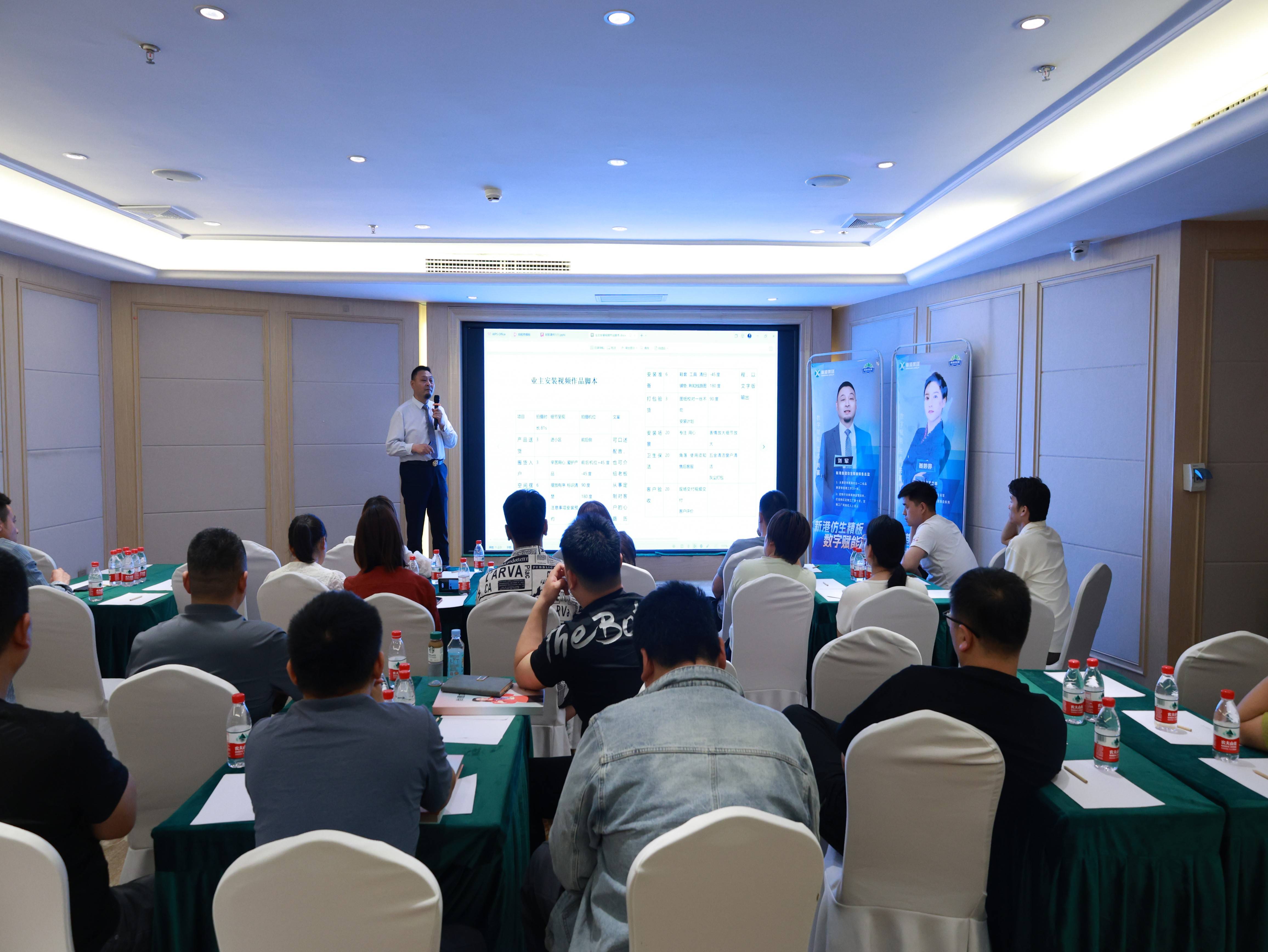 新港集團仿生精板營銷總監劉軍憑借豐富的定制行業營銷經驗和新媒體操盤運營的實戰經驗,從新媒體綜合技能培訓、定制工廠新媒體賬號的診斷與定位、新媒體IP打造、新媒體資源支持、直播間搭建和直播能力培養等方面進行分享,幫助定制工廠建立新媒體運營的系統性、結構性思維與技巧。