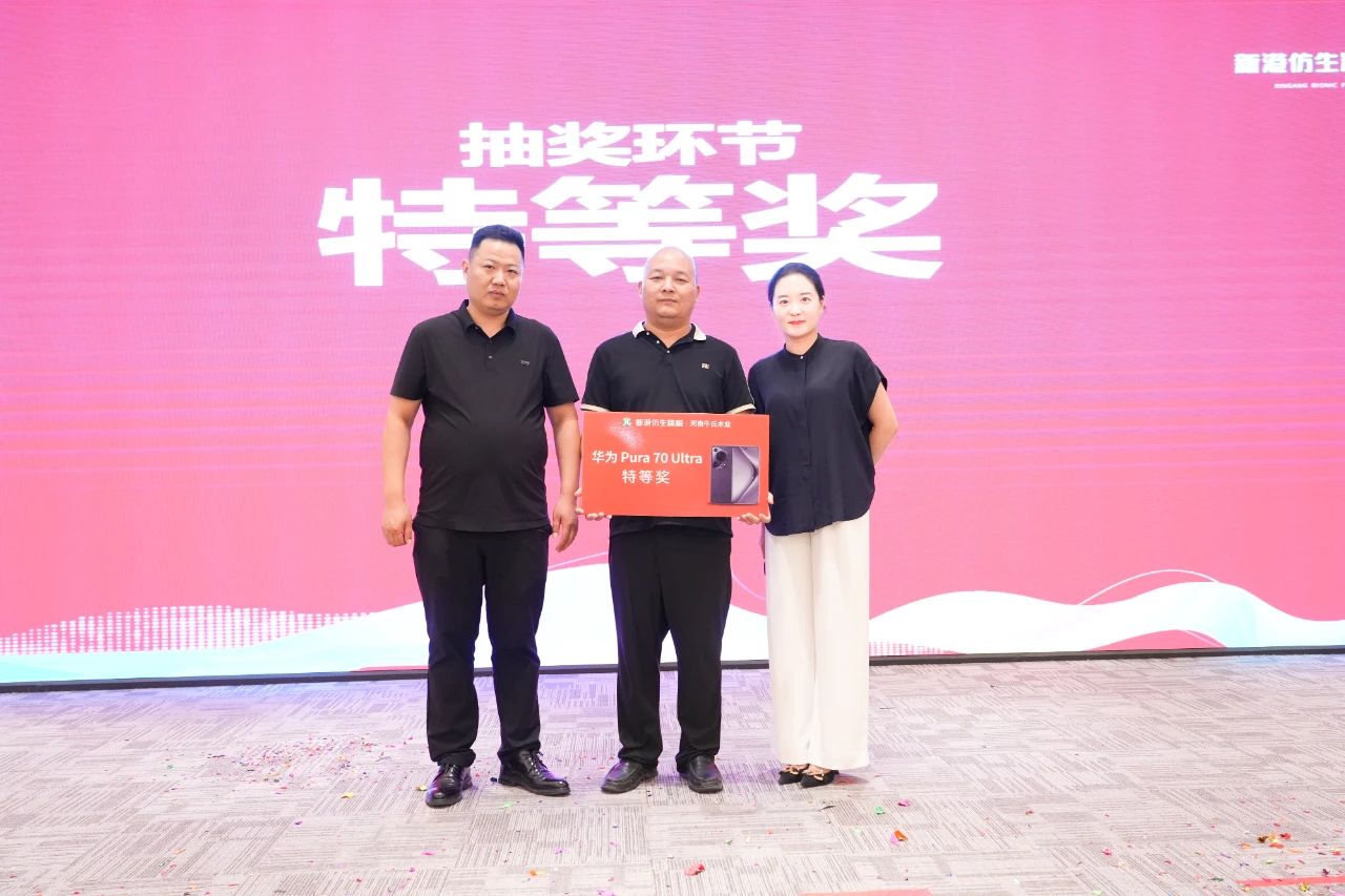 在活動現場,除了前沿的觀點與創新營銷模式,還有超級驚喜的派送!三場高潮迭起的抽獎活動,趣味橫生的互動提問環節,每一輪都扣人心弦,反響熱烈。獎品也十分豐厚,千元現金紅包、華為手機以及獲客利器新港小紅本、新港品牌代言人佟麗婭親筆簽名照等驚喜獎品讓人目不暇接,驚喜連連。