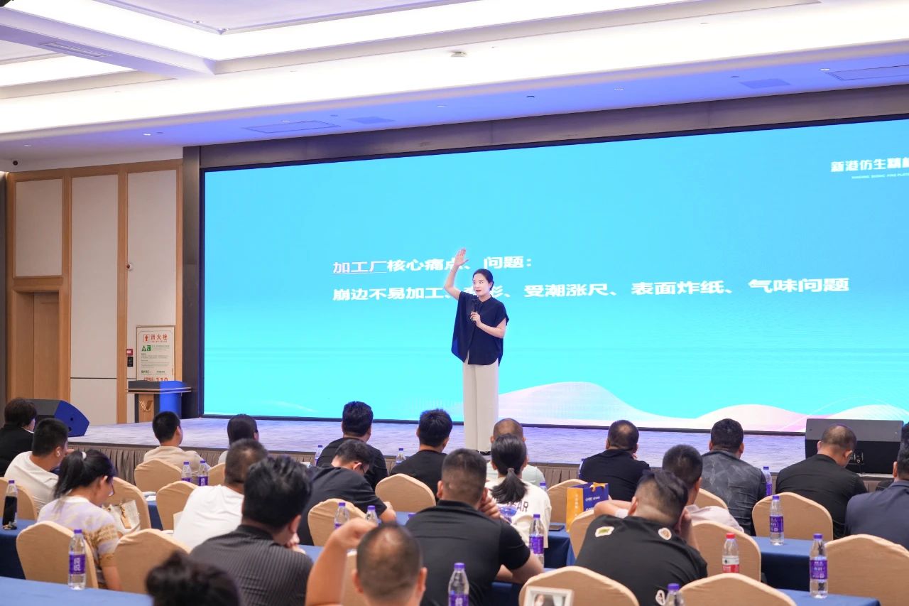 好的產品是客戶提升業績的利器。在活動現場,新港仿生膠及新港仿生精板產品吸引眾多合作伙伴的關注。
