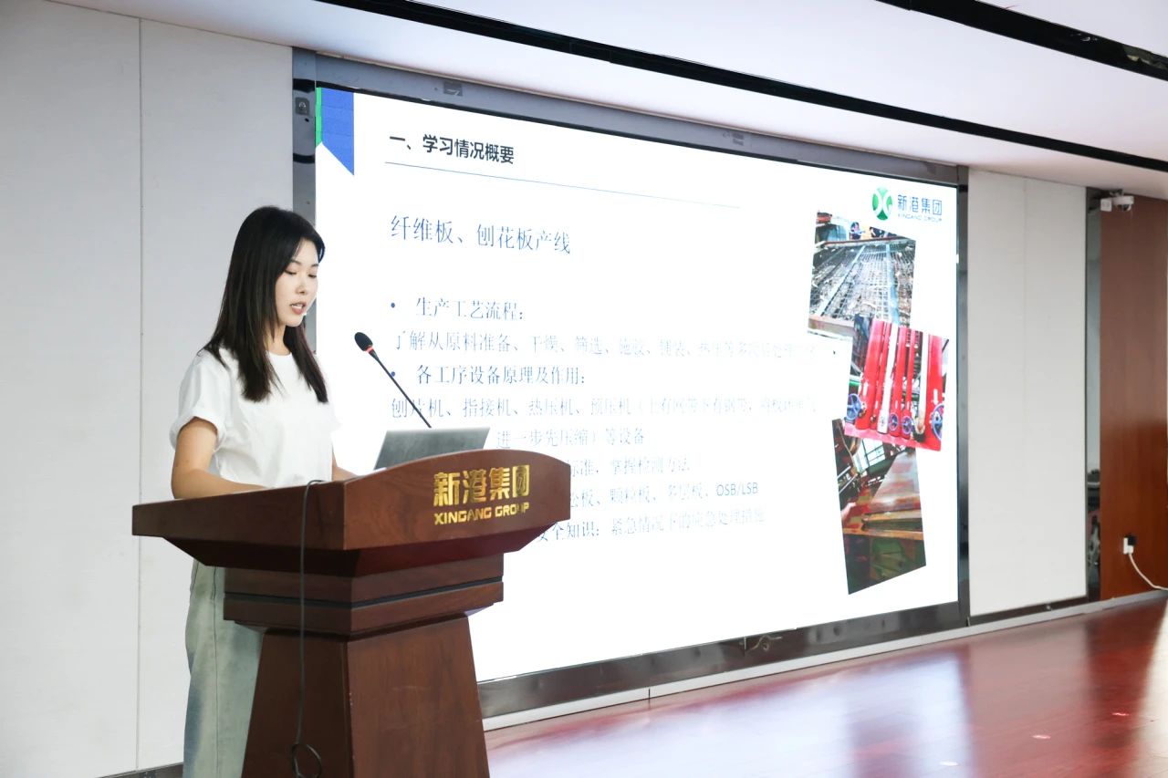 新港集團副總裁劉穎進行講話,對2024屆12位小翅膀圓滿結業表示祝賀,同時對整個培訓過程中大家所展現出的自信成長及師傅們的傾囊相授表示肯定與感謝,隨后提出自己的感受與期望。她強調,小翅膀們要深入了解新港的文化,在工作中做到三個不要:不要撒謊,要做到誠實、實事求是;不要做老“好人”,要堅守底線,堅定原則主見;不要不去感恩。最后祝愿小翅膀們未來成為更好的自己,在新港的舞臺上發光發熱。新港集團副總裁姜婷婷結合自身實際經歷,從“珍惜、任重道遠、期望”三方面為小翅膀們講述了職場中生動的一課。她鼓勵小翅膀們要珍惜難得的平臺機遇,并作出以下幾點要求:第一要在工作中學習、進步,對得起崗位與工作;第二要堅持把學習作為自己終生的必修課,指出工作是學習,甚至是修行;第三要制定非常明確的學習計劃。最后姜總寄語小翅膀們要努力拼搏,尋找標桿,在追趕標桿中成為標桿,向著從新港這艘大船上的一顆小零件到核心零件,再到成為獨當一面的旗手不斷邁進。新港集團研究院總監閔德秀進行講話,對新入職學員提出了殷切期望。要珍惜公司給予的機會與平臺,快速完成從新兵到老兵的轉變,在工作過程中只爭朝夕、敢為人先。要堅持三個相信:相信相信的力量,相信感恩的奇跡,相信忠誠的結果;不斷踐行三個超強:超強的學習力,超強的思考力,超強的執行力,讓自己成為一名合格的新港鐵軍,通過自己的努力成為新港的故事。儀式進入尾聲,新港集團董事長魏孝新作總結發言,高度贊揚了小翅膀們匯報環節中表現出的青春風采,引經據典帶領新員工深入了解了新港三十一年來的發展歷史及文化使命,勉勵大家以東北林業大學李堅院士為榜樣力量。他強調,新員工應與新港企業價值觀保持一致,堅持以人為本、永不自滿的理念,尋找標桿、學習標桿,站穩走實人生歷程中新階段的第一步;同時常懷感恩之心,珍惜當下,忠誠事業,協同作戰,厚植文化底蘊,共筑百年新港。逐夢新港,淬煉成鋼。新港集團始終重視人才隊伍建設,未來將進一步實施人才強企戰略,持續優化人才培養模式,吸引更多優秀人才加入新港的大家庭,同時為每一位員工提供廣闊的發展空間和成長機會。“新港之翼”小翅膀們從這里啟航,志存高遠,腳踏實地,借助新港這個平臺成長、提升、突破,在新的崗位上彰顯使命與擔當,讓青春在逐夢的奮斗中升華,為實現新港“全球木業科技領軍企業”的美好愿景貢獻自己的力量。