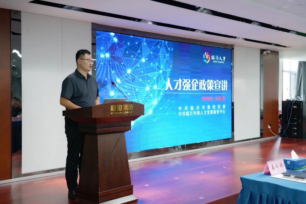 隨后,臨沂市委人才發展服務中心人才發展科二級主任科員殷文超對臨沂市人才政策進行深入解讀。近年來,臨沂市出臺了包括實施企業家精準培訓工程、開展“人才引領型企業”創建、選派“科技副總”到企業、集聚海內外高層次人才等在內的“1+N”系列人才政策,充分發揮企業在人才引進、培養、使用中的主體作用,全力構建區域人才聚集高地。